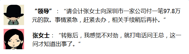 某公司会计张女士在微信上看到老板申请加她为好友,她以为王总换了微信号,于是想都没想,就同意了。