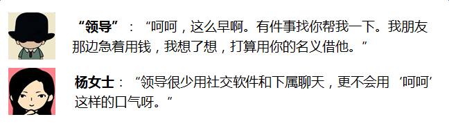 河北某地事业单位的杨女士收到“领导”主动加自己为微信好友的信息。第二天上午,领导突然在微信里和杨女士打招呼。